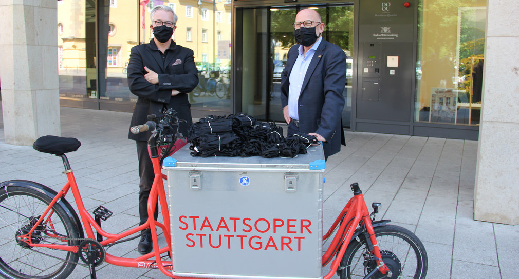Intendant Hendriks sagte: „Als Ausdruck gesellschaftlichen Engagements haben die Werkstätten der Staatstheater Stuttgart neben ihren Pflichtaufgaben bislang über 10.000 Mund-Nase-Masken für Stuttgarter Arztpraxen, karitative Einrichtungen, den Landtag von Baden-Württemberg und nun auch für das Verkehrsministerium genäht.“