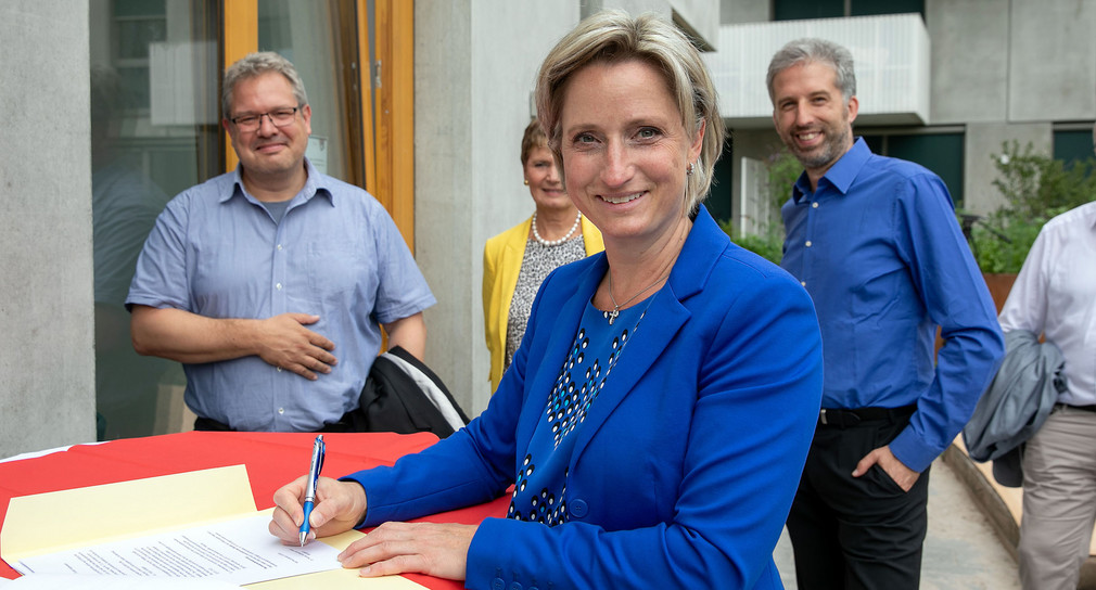 Als weiteren Baustein innerhalb der Wohnraumoffensive unterstützt das Wirtschaftsministerium im Rahmen von „Innovativ Wohnen BW“ zudem außergewöhnliche, modellhafte Projekte des innovativen bezahlbaren Wohnungsbaus. „Dabei kommt es uns vor allem darauf an, ganz konkrete beispielgebende Ansätze für übertragbare und zukunftsfähige Ideen im Land zu kommunizieren. So wollen wir neue Impulse für Innovationen im Planen und Bauen setzen“, hob die Ministerin hervor. „Ich freue mich, der Stadt Tübingen heute den ersten Förderbescheid von Innovativ Wohnen BW zu überreichen. Mit der Gründung der Dachgenossenschaft Wohnen Tübingen verfolgt die Stadt einen beispielhaft couragierten und sozialen Ansatz“, so die Ministerin.