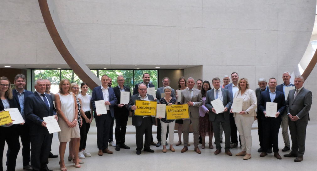 „Zusatzbezeichnungen stärken die Identität und das Zusammengehörigkeitsgefühl vor Ort und damit letztlich die kommunale Selbstverwaltung und unsere Kommunen. In einer Zusatzbezeichnung kann das eigene Selbstverständnis einer Gemeinde oder eines Ortsteils und der Bevölkerung besonders zum Ausdruck gebracht werden – die Bezeichnung dient damit als identitätsstiftendes Element für die Bürgerinnen und Bürger und die örtliche Gemeinschaft. Es freut mich daher sehr, dass heute 14 weiteren Städten und Gemeinden im Land die Genehmigung für kommunalrechtliche Zusatzbezeichnungen erteilt werden kann“, sagte der stellvertretende Ministerpräsident, Innen- und Kommunalminister Thomas Strobl am 8. September 2023. Anlass war die feierliche Übergabe der Genehmigungsurkunden an 14 Städte und Gemeinden aus zehn Landkreisen.