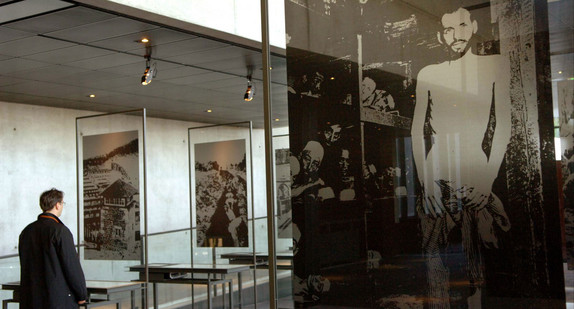 • Ein Mann geht durch die Ausstellungshalle der Gedenkstätte in Natzweiler-Struthof. (Foto: © dpa)