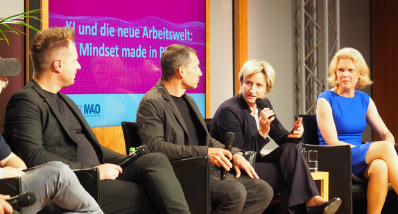 • Ein Mitarbeiter des Fraunhofer Instituts, führt bei der Eröffnung des neuen "Future Work Lab" des Fraunhofer Instituts in Stuttgart einen Roboterarm. (Foto: dpa)