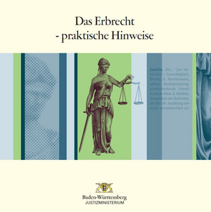 Die Broschüre „Das Erbrecht - praktische Hinweise“ soll einen ersten Überblick über das Erbrecht geben. Sie beginnt mit der gesetzlichen Erbfolge, die eintritt, wenn zu Lebzeiten keine abweichende Regelung getroffen wurde. Sodann wird erläutert, wie die Vermögensnachfolge für den Todesfall durch Testament oder Erbvertrag gestaltet werden kann. Anhand von Beispielen werden verschiedene wichtige Fallgestaltungen veranschaulicht.