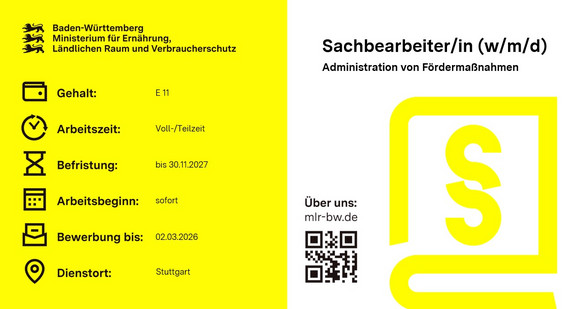 Die Nationalparkverwaltung Ruhestein, Winterdienstgehöft Alexanderschanze, sucht frühestmöglich eine Sachbearbeiterin/einen Sachbearbeiter (m/w/d), Teilzeit 80 Prozent (31,6 h/Woche), befristet bis voraussichtlich 25.02.2027 aufgrund § 14, Abs. 1, Nr. 3 TzBfG. Bewerbungsschluss: 01.03.2026