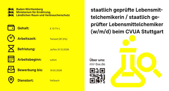Bei der Landesanstalt für Umwelt Baden-Württemberg in Karlsruhe, Abteilung „Techni-scher Umweltschutz“ ist eine Stelle im höheren Dienst mit einem Master (w/m/d) der Fachrichtung Ingenieur-, Naturwissenschaften oder vergleichbare Fachrichtung im Be-reich Abfallwirtschaft im Referat „Kreislaufwirtschaft, Chemikaliensicherheit“ zum nächstmöglichen Zeitpunkt befristet bis 31.12.2027 zu besetzen.