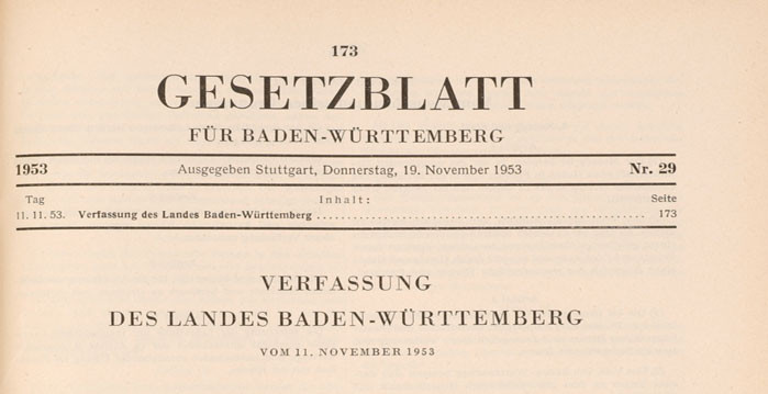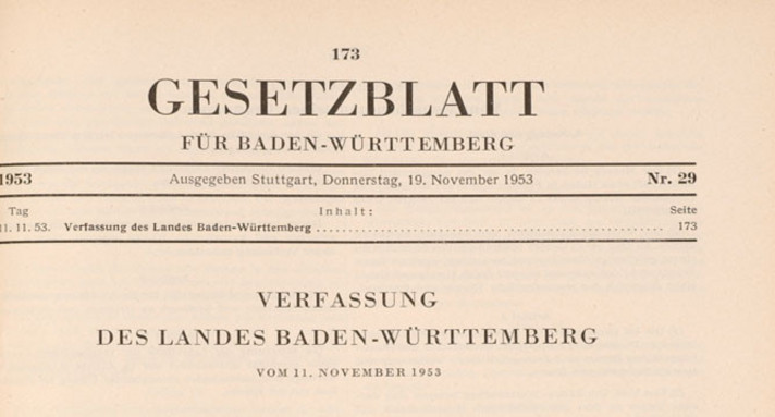 Nach dem Rücktritt der ersten Landesregierung aus SPD, FDP/DVP und BHE unter Ministerpräsident Reinhold Maier im Herbst 1953 – die Bundestagswahl hatte der Koalition im Land schwere Einbußen beschert – entspannte sich die Atmosphäre. Die neue Allparteienkoalition fand tragfähige Kompromisse für die kontroversen Verfassungsartikel. In der Schulfrage einigte man sich zunächst auf den Status quo, in den einzelnen Landesteilen blieben die Formen der Volksschule erhalten, die vor den Verfassungsberatungen schon gegolten hatten. Nach der Verabschiedung würdigte der Präsident der Verfassungsgebenden Landesversammlung, Carl Neinhaus, die Verfassung als „unentbehrliches Fundament unseres Volks- und Staatslebens“.